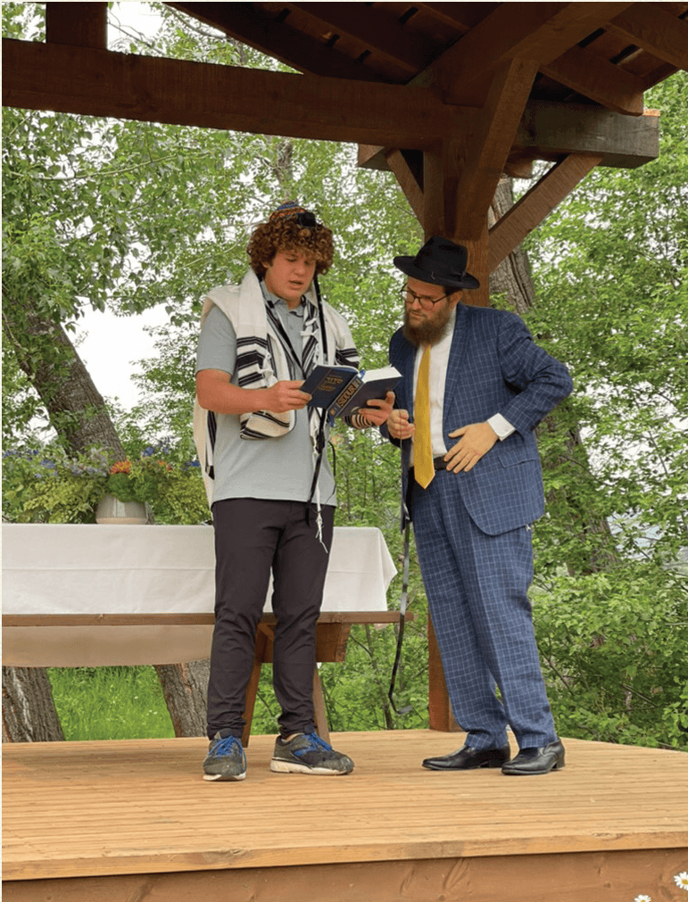 In September of 2020, a fire broke out and burned down our house. We evacuated, stayed with family and friends, and eventually went back to Florida. But I kept learning with Rabbi Bruk even from home. The following summer, we came back to Montana and had my Bar Mitzvah next to Bridger Creek, on my family's property. Just me, my mom, my dad, my brother, my sister, and Rabbi Bruk.